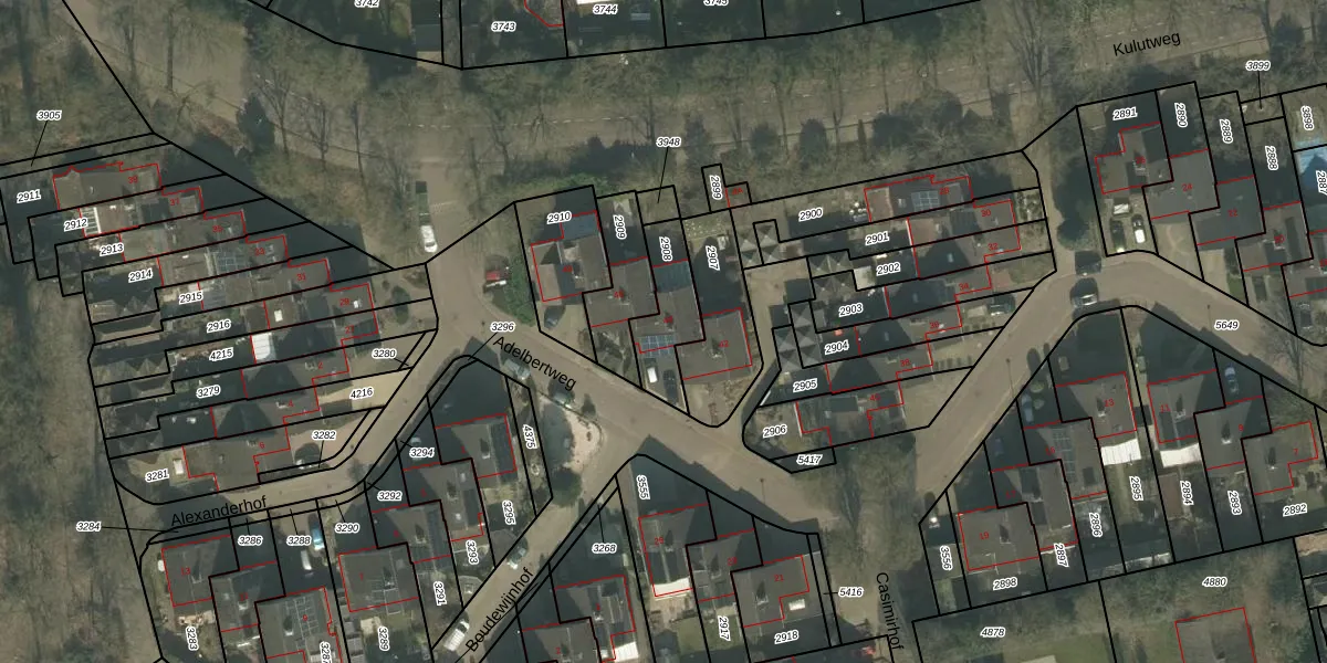 Gebruik de zoekbalk of klik op een perceel voor informatie over de adressen binnen dit perceel.