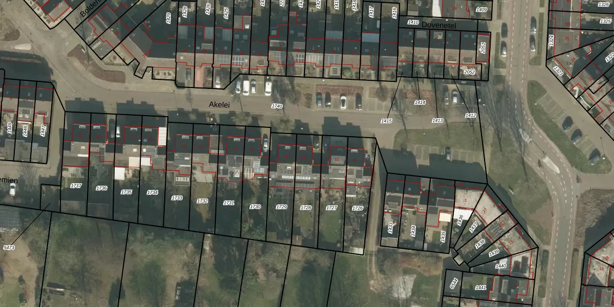 Het perceel waarop Akelei 13 staat heeft een oppervlakte van 308 m². Dit is een groot perceel. De perceeloppervlakte wordt geregistreerd door het Kadaster. Gedetailleerde informatie over de maten van dit perceel kunt u vinden in het rapport Kadastrale kaart met maatvoering van Akelei 13.