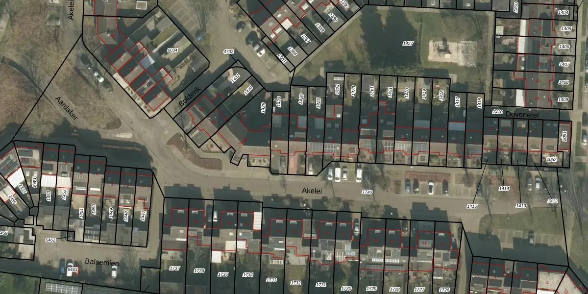 Gebruik de zoekbalk of klik op een perceel voor informatie over de adressen binnen dit perceel.