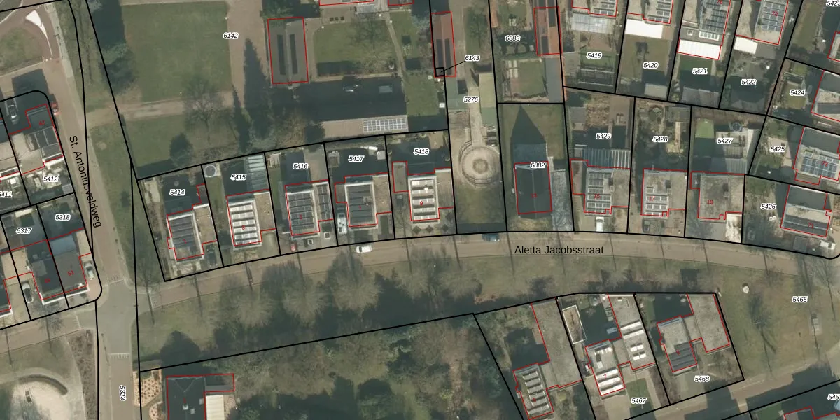 Het perceel waarop Aletta Jacobsstraat 9 staat heeft een oppervlakte van 376 m². Dit is een groot perceel. De perceeloppervlakte wordt geregistreerd door het Kadaster. Gedetailleerde informatie over de maten van dit perceel kunt u vinden in het rapport Kadastrale kaart met maatvoering van Aletta Jacobsstraat 9.