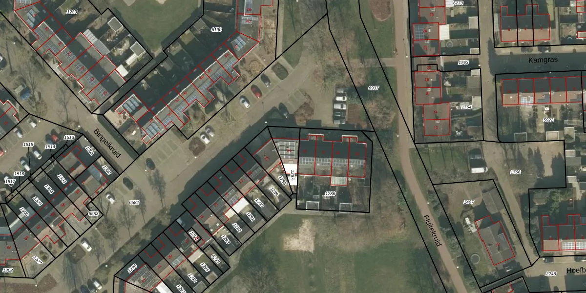Gebruik de zoekbalk of klik op een perceel voor informatie over de adressen binnen dit perceel.