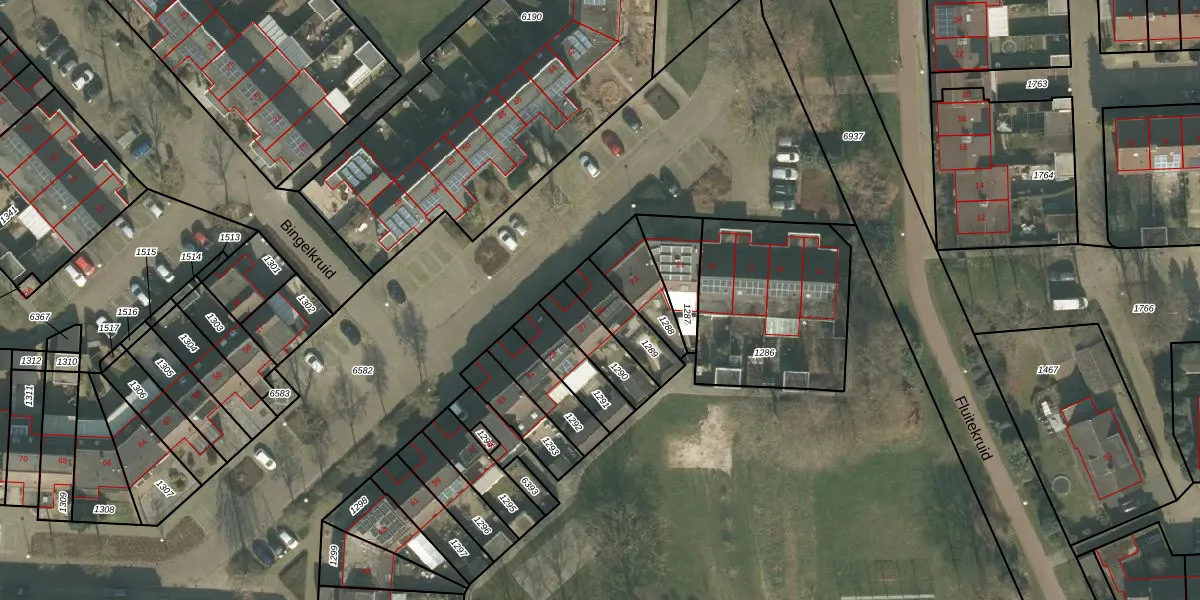 Gebruik de zoekbalk of klik op een perceel voor informatie over de adressen binnen dit perceel.