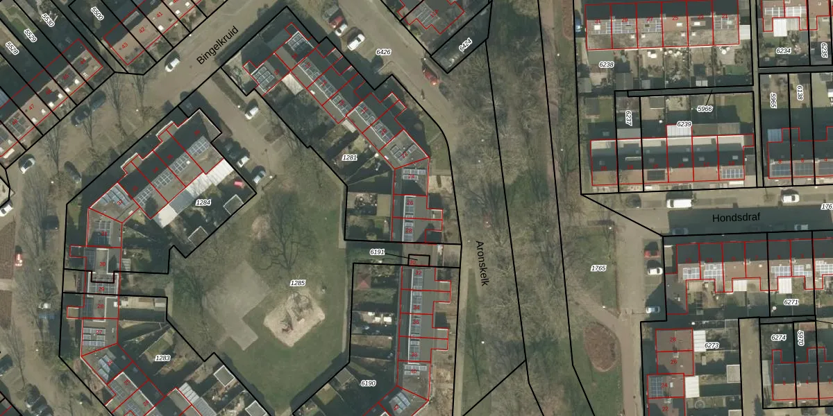 Het perceel waarop Aronskelk 26 staat heeft een oppervlakte van 1545 m². Dit is een zeer groot perceel. De perceeloppervlakte wordt geregistreerd door het Kadaster. Gedetailleerde informatie over de maten van dit perceel kunt u vinden in het rapport Kadastrale kaart met maatvoering van Aronskelk 26.