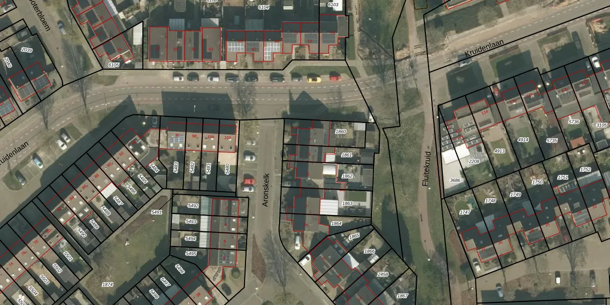 Gebruik de zoekbalk of klik op een perceel voor informatie over de adressen binnen dit perceel.