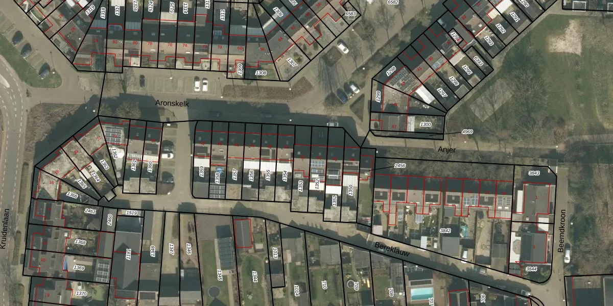 Gebruik de zoekbalk of klik op een perceel voor informatie over de adressen binnen dit perceel.