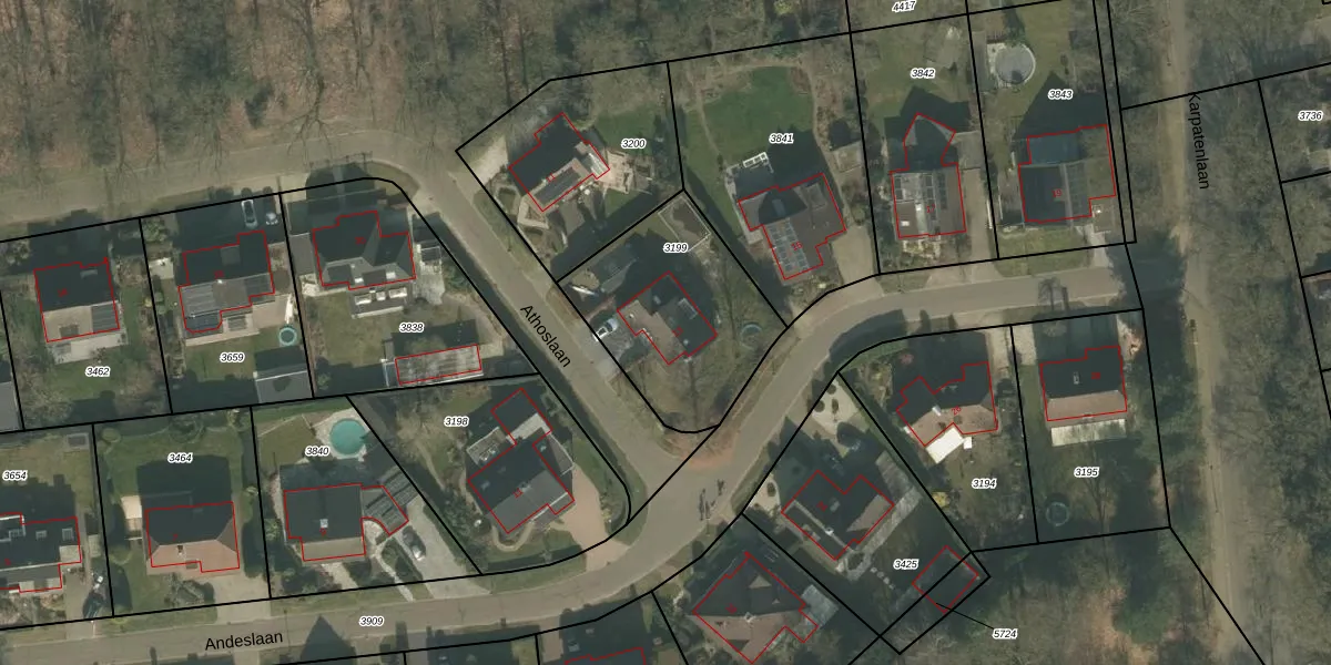 Het perceel waarop Athoslaan 13 staat heeft een oppervlakte van 705 m². Dit is een groot perceel. De perceeloppervlakte wordt geregistreerd door het Kadaster. Gedetailleerde informatie over de maten van dit perceel kunt u vinden in het rapport Kadastrale kaart met maatvoering van Athoslaan 13.