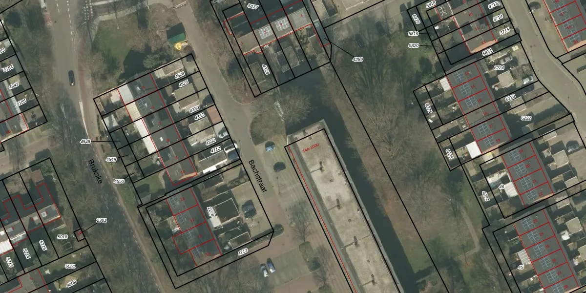 Het perceel waarop Bachstraat 14-A staat heeft een oppervlakte van 1910 m². Dit is een zeer groot perceel. De perceeloppervlakte wordt geregistreerd door het Kadaster. Gedetailleerde informatie over de maten van dit perceel kunt u vinden in het rapport Kadastrale kaart met maatvoering van Bachstraat 14-A.