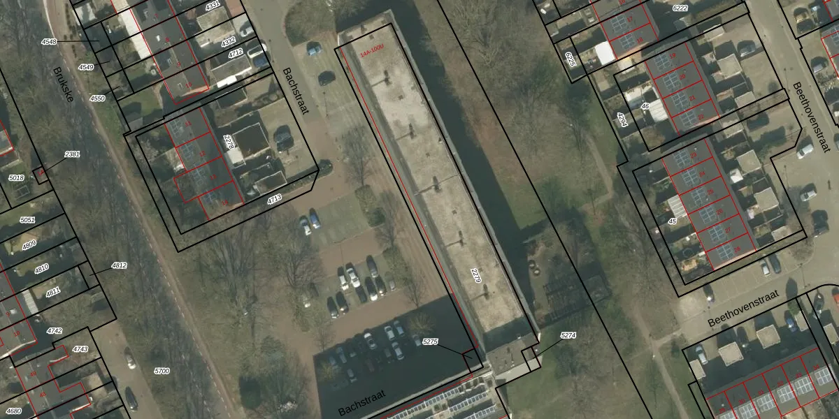 Het perceel waarop Bachstraat 22 staat heeft een oppervlakte van 1910 m². Dit is een zeer groot perceel. De perceeloppervlakte wordt geregistreerd door het Kadaster. Gedetailleerde informatie over de maten van dit perceel kunt u vinden in het rapport Kadastrale kaart met maatvoering van Bachstraat 22.