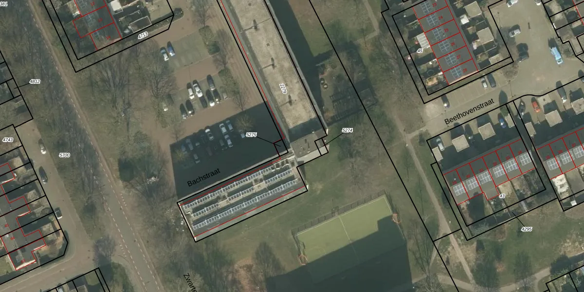 Het perceel waarop Bachstraat 32 staat heeft een oppervlakte van 1910 m². Dit is een zeer groot perceel. De perceeloppervlakte wordt geregistreerd door het Kadaster. Gedetailleerde informatie over de maten van dit perceel kunt u vinden in het rapport Kadastrale kaart met maatvoering van Bachstraat 32.