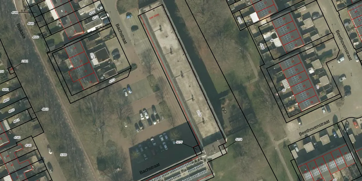 Het perceel waarop Bachstraat 41 staat heeft een oppervlakte van 1910 m². Dit is een zeer groot perceel. De perceeloppervlakte wordt geregistreerd door het Kadaster. Gedetailleerde informatie over de maten van dit perceel kunt u vinden in het rapport Kadastrale kaart met maatvoering van Bachstraat 41.