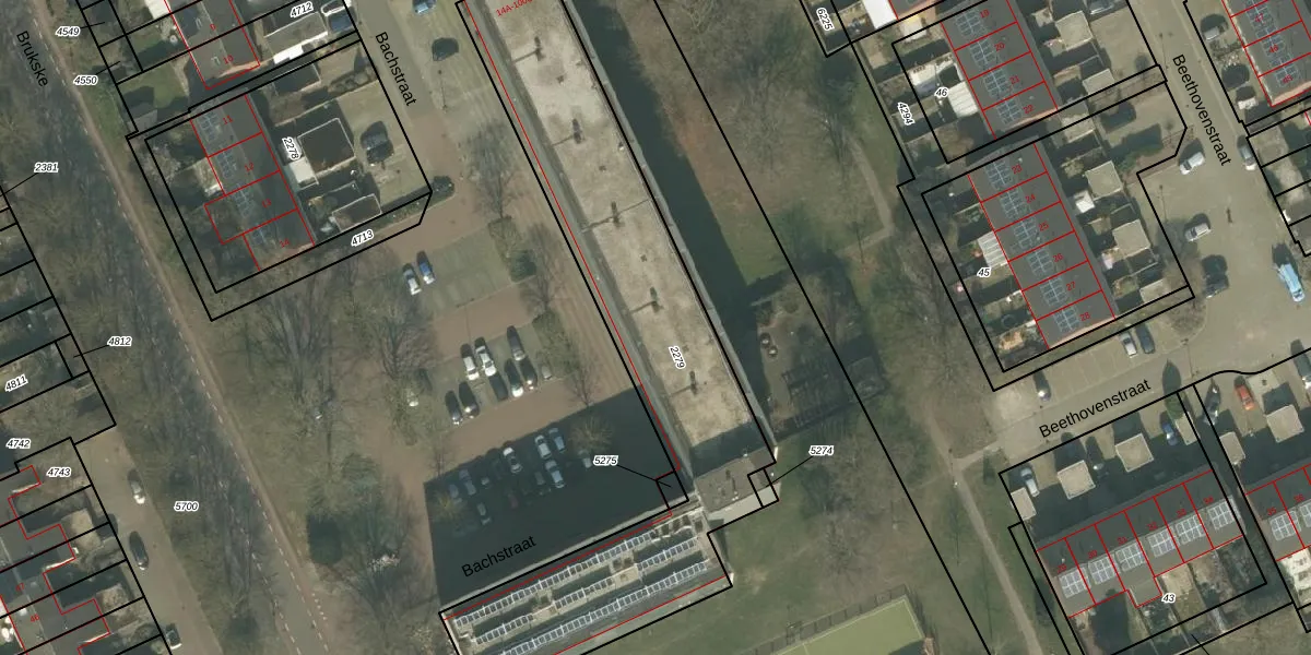 Het perceel waarop Bachstraat 87 staat heeft een oppervlakte van 1910 m². Dit is een zeer groot perceel. De perceeloppervlakte wordt geregistreerd door het Kadaster. Gedetailleerde informatie over de maten van dit perceel kunt u vinden in het rapport Kadastrale kaart met maatvoering van Bachstraat 87.