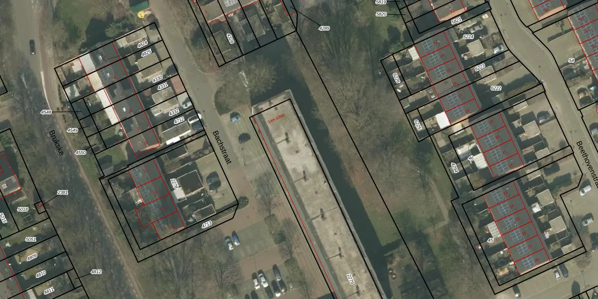 Het perceel waarop Bachstraat 88 staat heeft een oppervlakte van 1910 m². Dit is een zeer groot perceel. De perceeloppervlakte wordt geregistreerd door het Kadaster. Gedetailleerde informatie over de maten van dit perceel kunt u vinden in het rapport Kadastrale kaart met maatvoering van Bachstraat 88.