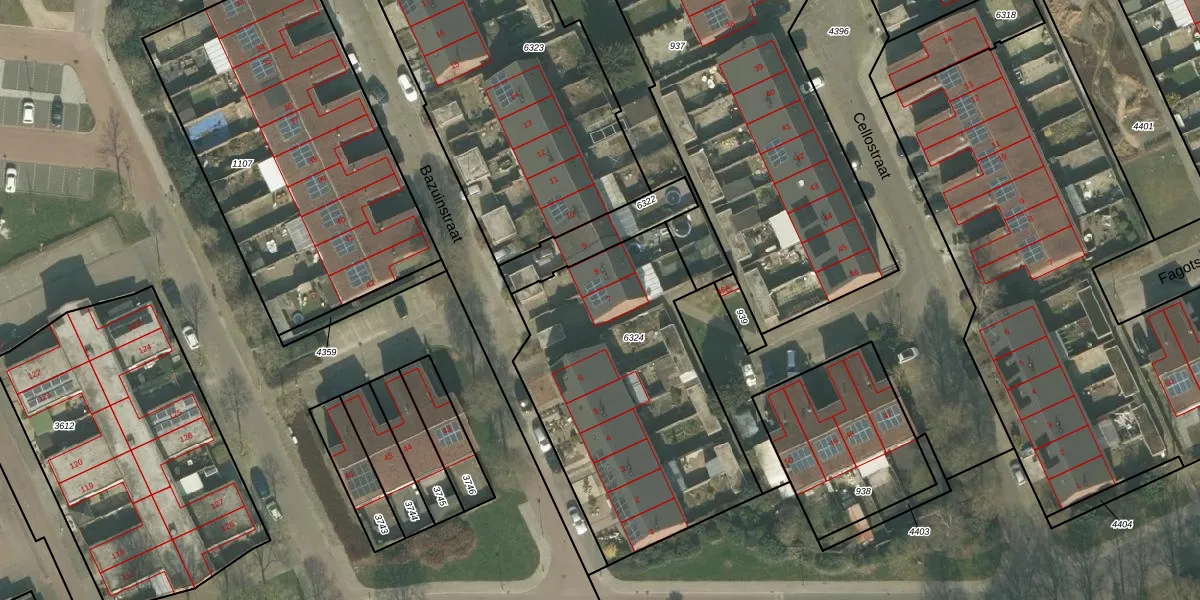 Het perceel waarop Bazuinstraat 7 staat heeft een oppervlakte van 1370 m². Dit is een zeer groot perceel. De perceeloppervlakte wordt geregistreerd door het Kadaster. Gedetailleerde informatie over de maten van dit perceel kunt u vinden in het rapport Kadastrale kaart met maatvoering van Bazuinstraat 7.