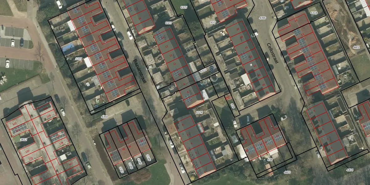 Het perceel waarop Bazuinstraat 8 staat heeft een oppervlakte van 1370 m². Dit is een zeer groot perceel. De perceeloppervlakte wordt geregistreerd door het Kadaster. Gedetailleerde informatie over de maten van dit perceel kunt u vinden in het rapport Kadastrale kaart met maatvoering van Bazuinstraat 8.