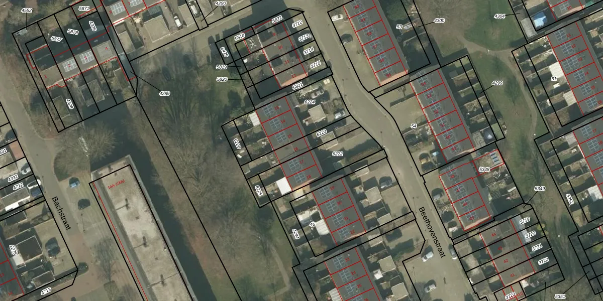 Gebruik de zoekbalk of klik op een perceel voor informatie over de adressen binnen dit perceel.