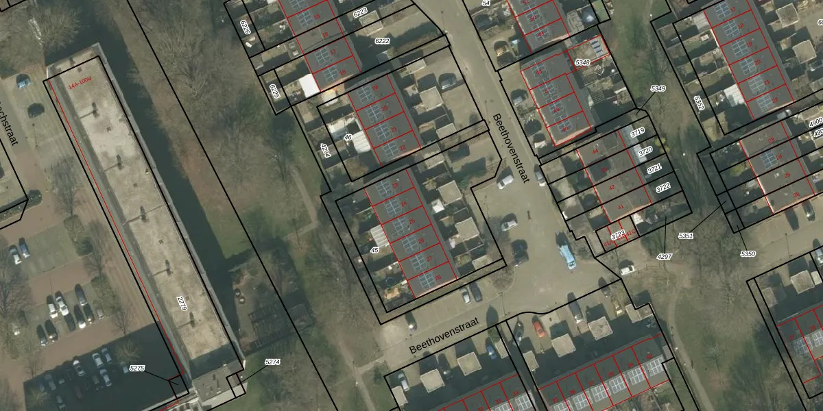 Het perceel waarop Beethovenstraat 24 staat heeft een oppervlakte van 1045 m². Dit is een zeer groot perceel. De perceeloppervlakte wordt geregistreerd door het Kadaster. Gedetailleerde informatie over de maten van dit perceel kunt u vinden in het rapport Kadastrale kaart met maatvoering van Beethovenstraat 24.
