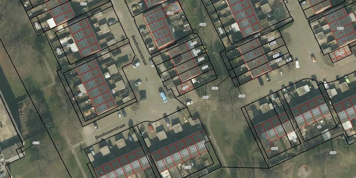 Het perceel waarop Beethovenstraat 41-A staat heeft een oppervlakte van 53 m². Dit is een klein perceel. De perceeloppervlakte wordt geregistreerd door het Kadaster. Gedetailleerde informatie over de maten van dit perceel kunt u vinden in het rapport Kadastrale kaart met maatvoering van Beethovenstraat 41-A.