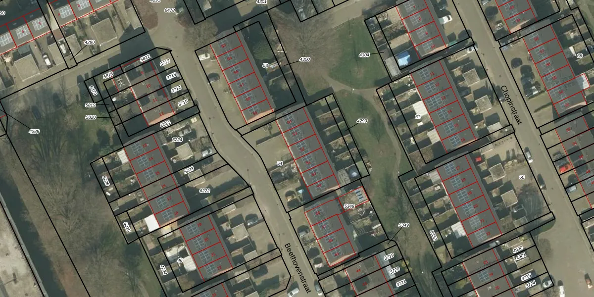 Het perceel waarop Beethovenstraat 52 staat heeft een oppervlakte van 835 m². Dit is een groot perceel. De perceeloppervlakte wordt geregistreerd door het Kadaster. Gedetailleerde informatie over de maten van dit perceel kunt u vinden in het rapport Kadastrale kaart met maatvoering van Beethovenstraat 52.
