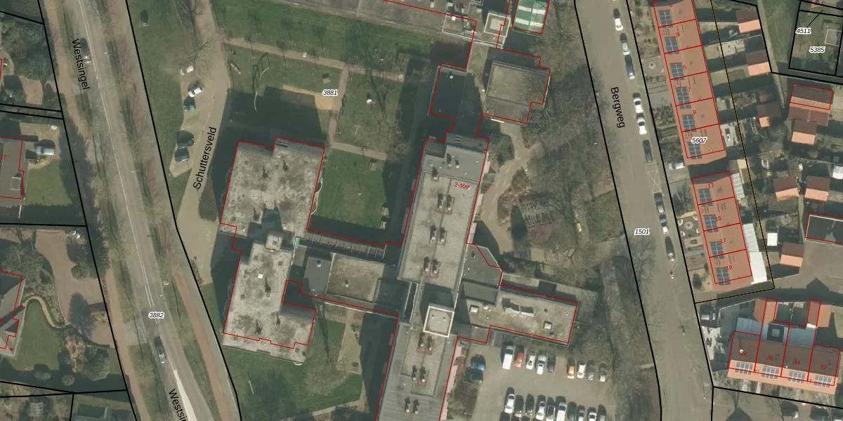 Het perceel waarop Bergweg 222 staat heeft een oppervlakte van 1,7 ha. Dit is een zeer groot perceel. De perceeloppervlakte wordt geregistreerd door het Kadaster. Gedetailleerde informatie over de maten van dit perceel kunt u vinden in het rapport Kadastrale kaart met maatvoering van Bergweg 222.