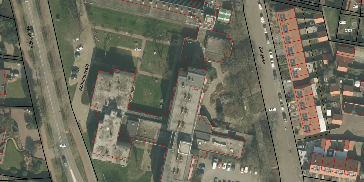 Het perceel waarop Bergweg 304-D staat heeft een oppervlakte van 1,7 ha. Dit is een zeer groot perceel. De perceeloppervlakte wordt geregistreerd door het Kadaster. Gedetailleerde informatie over de maten van dit perceel kunt u vinden in het rapport Kadastrale kaart met maatvoering van Bergweg 304-D.