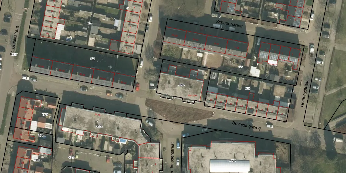 Bevrijdingsweg 16-F is gelegen op kadastraal perceel VRY00L4012. Deze kadastrale aanduiding is uniek en wordt gebruikt door het Kadaster om eigendomsrechten en andere zakelijke rechten vast te leggen. Het perceel maakt onderdeel uit van de kadastrale gemeente Venray.