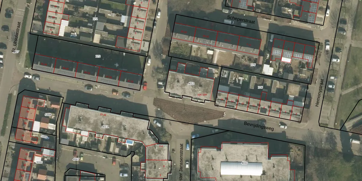 Bevrijdingsweg 16-E is gelegen op kadastraal perceel VRY00L4012. Deze kadastrale aanduiding is uniek en wordt gebruikt door het Kadaster om eigendomsrechten en andere zakelijke rechten vast te leggen. Het perceel maakt onderdeel uit van de kadastrale gemeente Venray.