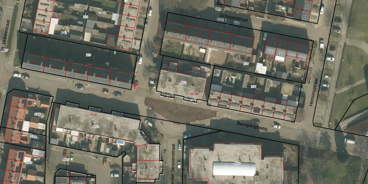 Het perceel waarop Bevrijdingsweg 16-D staat heeft een oppervlakte van 590 m². Dit is een groot perceel. De perceeloppervlakte wordt geregistreerd door het Kadaster. Gedetailleerde informatie over de maten van dit perceel kunt u vinden in het rapport Kadastrale kaart met maatvoering van Bevrijdingsweg 16-D.