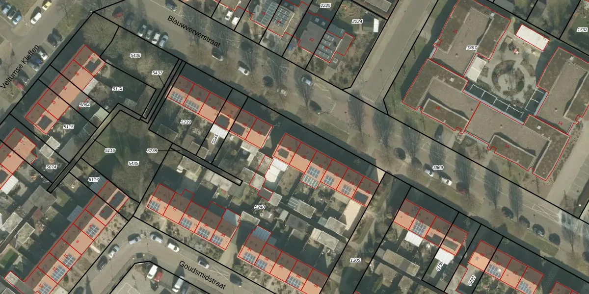 Het perceel waarop Blauwververstraat 35 staat heeft een oppervlakte van 3278 m². Dit is een zeer groot perceel. De perceeloppervlakte wordt geregistreerd door het Kadaster. Gedetailleerde informatie over de maten van dit perceel kunt u vinden in het rapport Kadastrale kaart met maatvoering van Blauwververstraat 35.