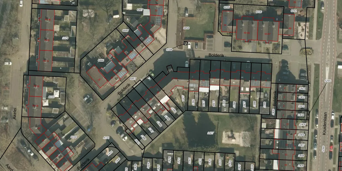 Het perceel waarop Bolderik 18 staat heeft een oppervlakte van 330 m². Dit is een groot perceel. De perceeloppervlakte wordt geregistreerd door het Kadaster. Gedetailleerde informatie over de maten van dit perceel kunt u vinden in het rapport Kadastrale kaart met maatvoering van Bolderik 18.