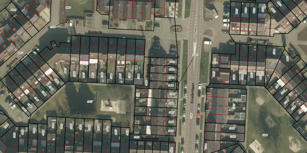 Gebruik de zoekbalk of klik op een perceel voor informatie over de adressen binnen dit perceel.