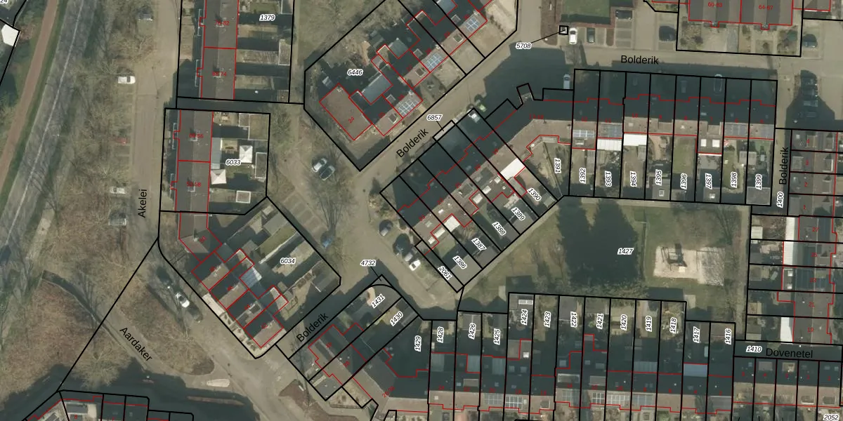 Het perceel waarop Bolderik 23 staat heeft een oppervlakte van 182 m². Dit is een middelgroot perceel. De perceeloppervlakte wordt geregistreerd door het Kadaster. Gedetailleerde informatie over de maten van dit perceel kunt u vinden in het rapport Kadastrale kaart met maatvoering van Bolderik 23.