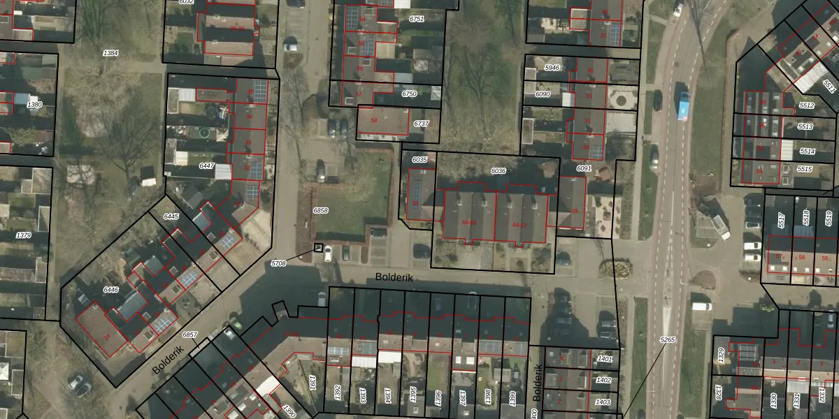 Het perceel waarop Bolderik 59 staat heeft een oppervlakte van 153 m². Dit is een middelgroot perceel. De perceeloppervlakte wordt geregistreerd door het Kadaster. Gedetailleerde informatie over de maten van dit perceel kunt u vinden in het rapport Kadastrale kaart met maatvoering van Bolderik 59.