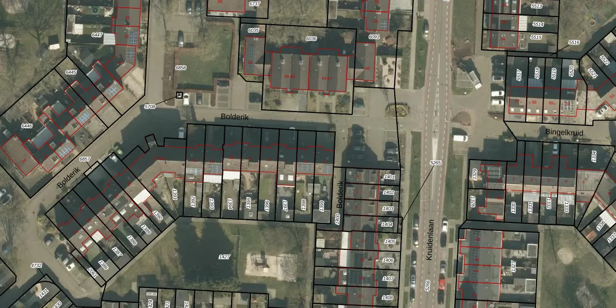 Het perceel waarop Bolderik 6 staat heeft een oppervlakte van 179 m². Dit is een middelgroot perceel. De perceeloppervlakte wordt geregistreerd door het Kadaster. Gedetailleerde informatie over de maten van dit perceel kunt u vinden in het rapport Kadastrale kaart met maatvoering van Bolderik 6.
