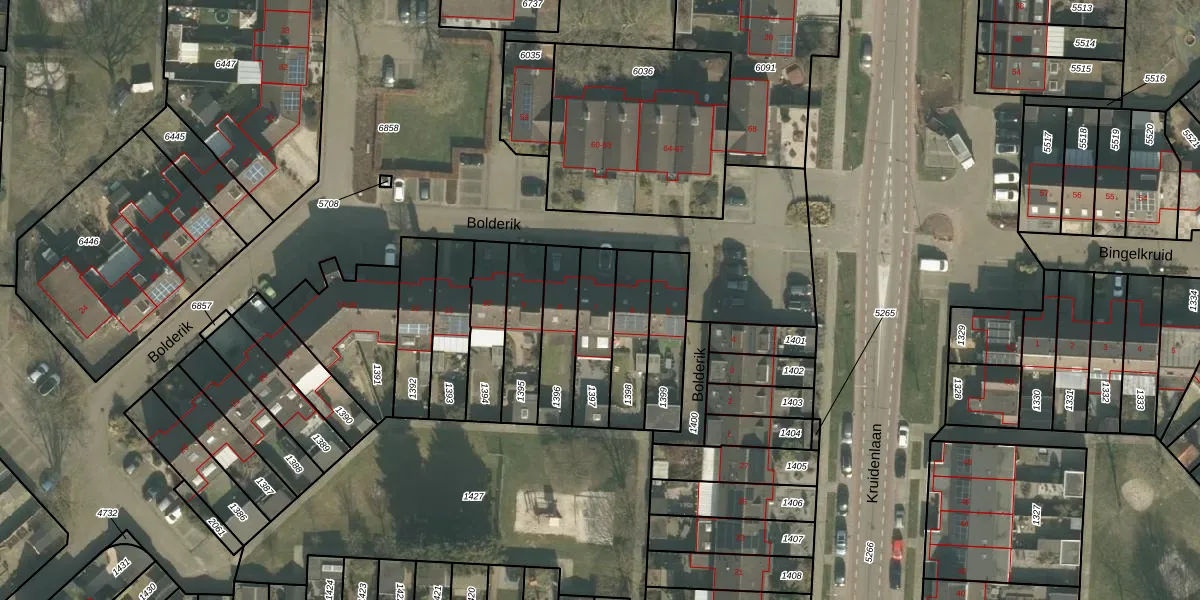 Het perceel waarop Bolderik 7 staat heeft een oppervlakte van 179 m². Dit is een middelgroot perceel. De perceeloppervlakte wordt geregistreerd door het Kadaster. Gedetailleerde informatie over de maten van dit perceel kunt u vinden in het rapport Kadastrale kaart met maatvoering van Bolderik 7.