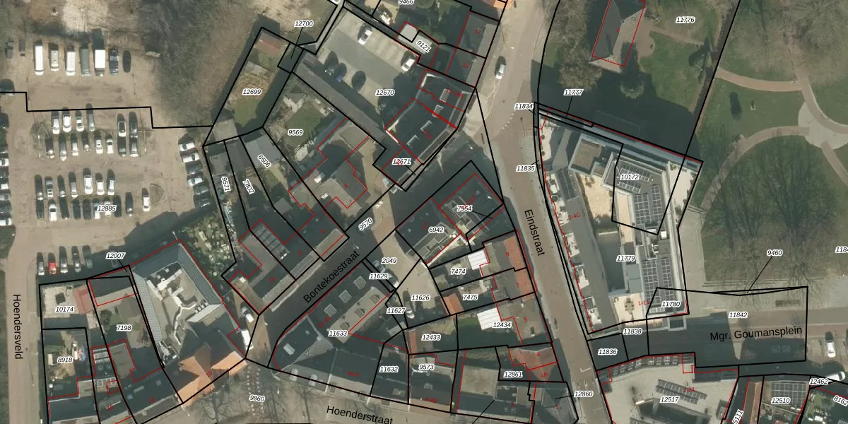 Bontekoestraat 1 is gelegen op kadastraal perceel VRY00C6942. Deze kadastrale aanduiding is uniek en wordt gebruikt door het Kadaster om eigendomsrechten en andere zakelijke rechten vast te leggen. Het perceel maakt onderdeel uit van de kadastrale gemeente Venray.