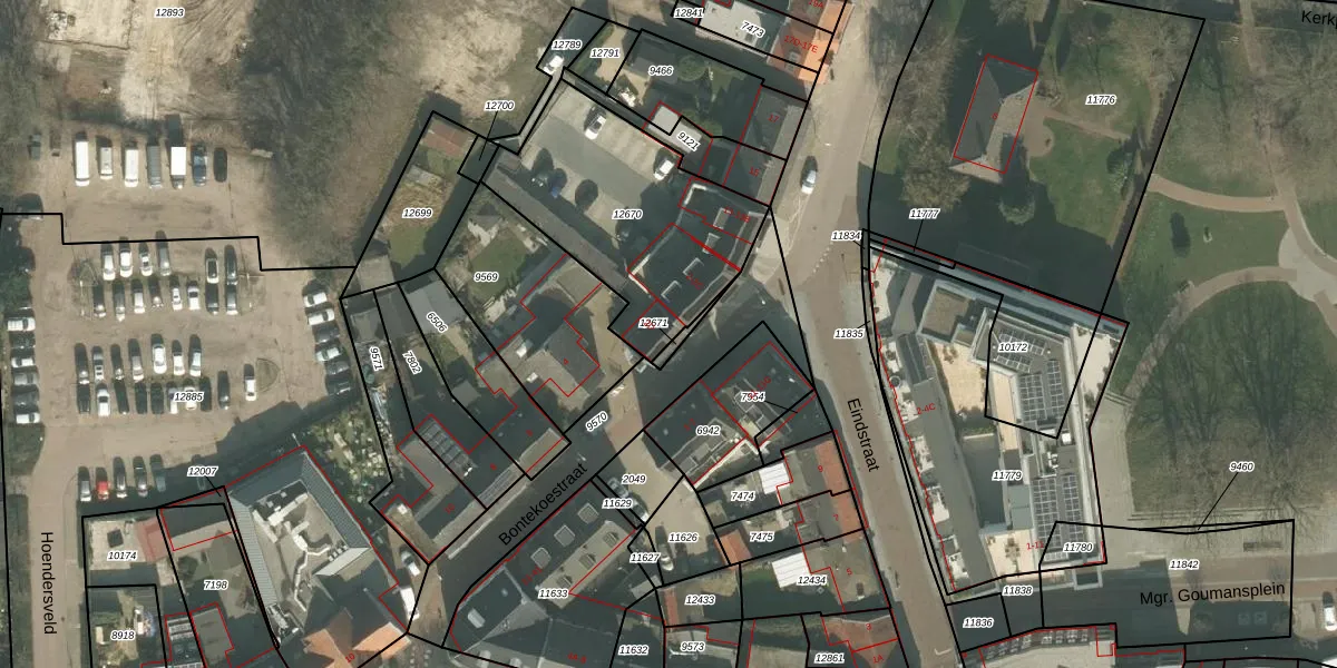 Het perceel waarop Bontekoestraat 2-D staat heeft een oppervlakte van 874 m². Dit is een groot perceel. De perceeloppervlakte wordt geregistreerd door het Kadaster. Gedetailleerde informatie over de maten van dit perceel kunt u vinden in het rapport Kadastrale kaart met maatvoering van Bontekoestraat 2-D.