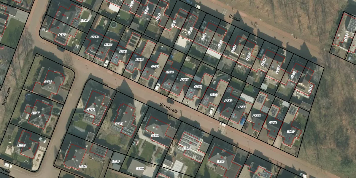 Het perceel waarop Boomvalk 16 staat heeft een oppervlakte van 226 m². Dit is een middelgroot perceel. De perceeloppervlakte wordt geregistreerd door het Kadaster. Gedetailleerde informatie over de maten van dit perceel kunt u vinden in het rapport Kadastrale kaart met maatvoering van Boomvalk 16.