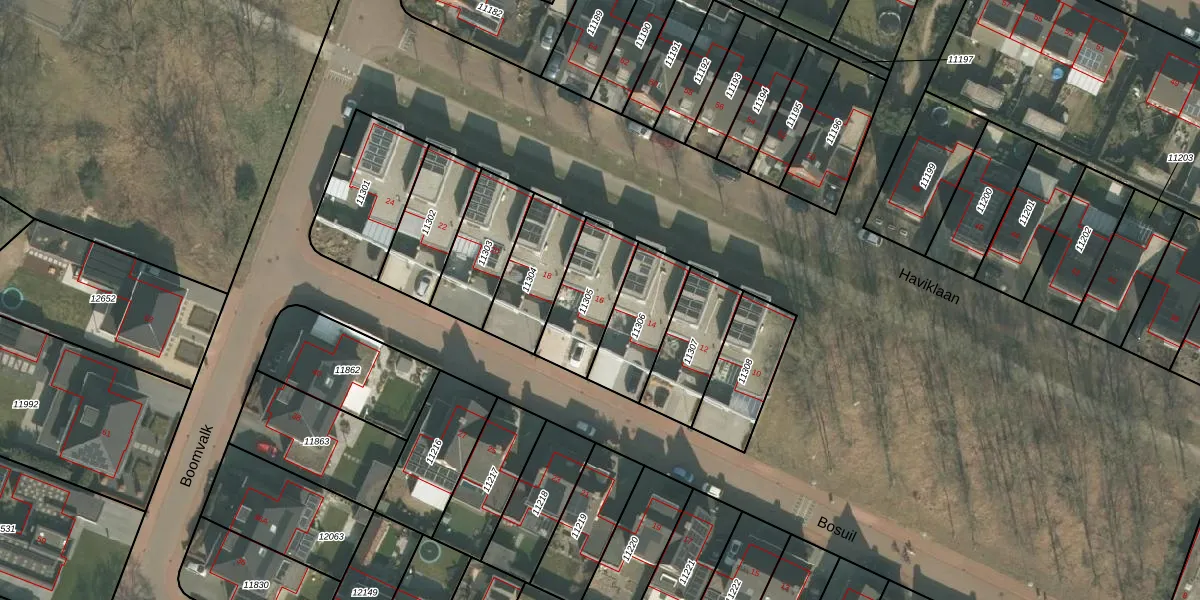 Gebruik de zoekbalk of klik op een perceel voor informatie over de adressen binnen dit perceel.
