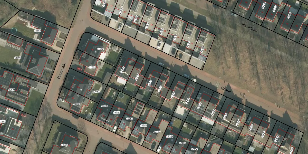 Het perceel waarop Bosuil 23 staat heeft een oppervlakte van 234 m². Dit is een middelgroot perceel. De perceeloppervlakte wordt geregistreerd door het Kadaster. Gedetailleerde informatie over de maten van dit perceel kunt u vinden in het rapport Kadastrale kaart met maatvoering van Bosuil 23.