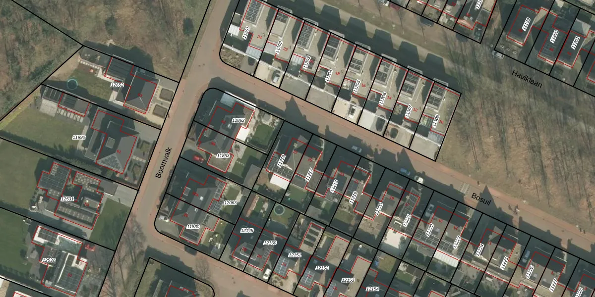 Het perceel waarop Bosuil 27 staat heeft een oppervlakte van 275 m². Dit is een middelgroot perceel. De perceeloppervlakte wordt geregistreerd door het Kadaster. Gedetailleerde informatie over de maten van dit perceel kunt u vinden in het rapport Kadastrale kaart met maatvoering van Bosuil 27.