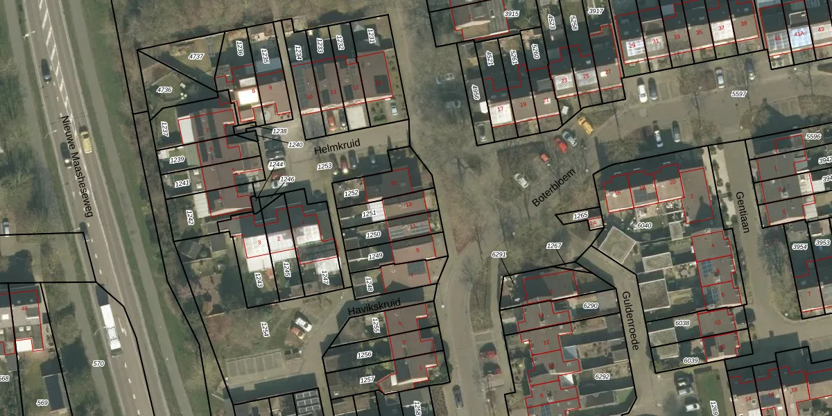 Het perceel waarop Boterbloem 13 staat heeft een oppervlakte van 127 m². Dit is een middelgroot perceel. De perceeloppervlakte wordt geregistreerd door het Kadaster. Gedetailleerde informatie over de maten van dit perceel kunt u vinden in het rapport Kadastrale kaart met maatvoering van Boterbloem 13.