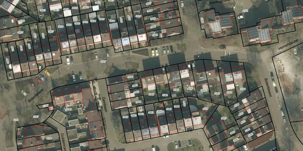 Gebruik de zoekbalk of klik op een perceel voor informatie over de adressen binnen dit perceel.