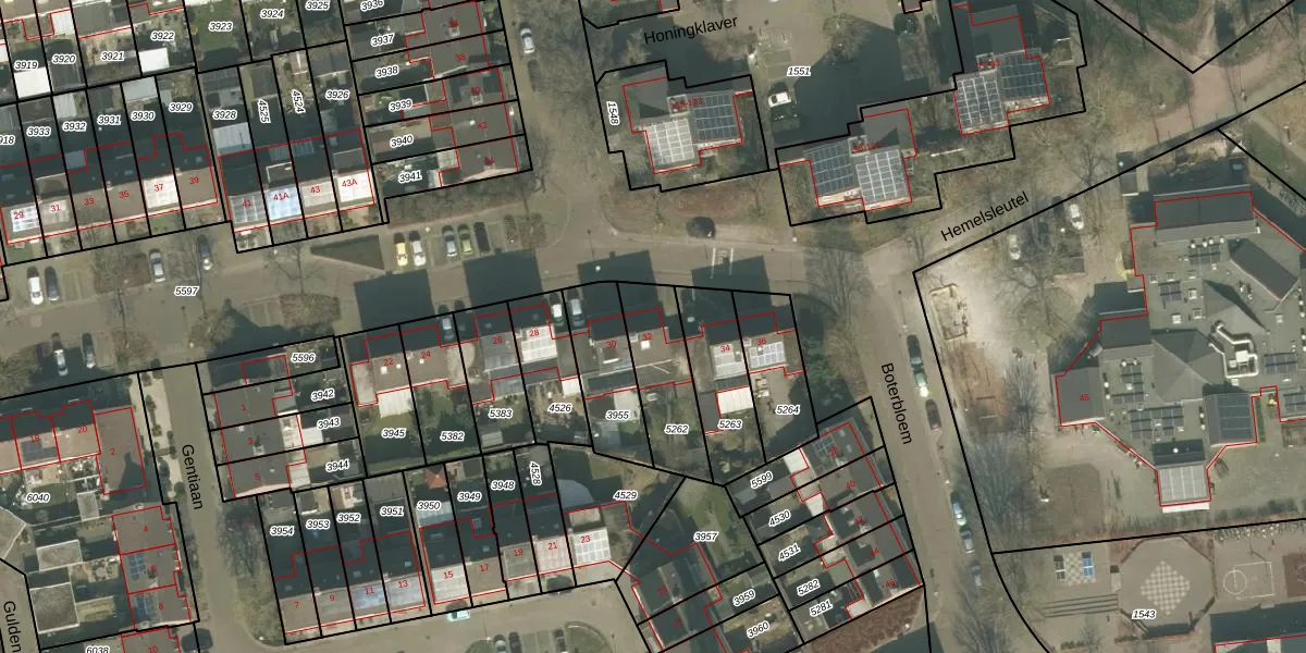Het perceel waarop Boterbloem 32 staat heeft een oppervlakte van 256 m². Dit is een middelgroot perceel. De perceeloppervlakte wordt geregistreerd door het Kadaster. Gedetailleerde informatie over de maten van dit perceel kunt u vinden in het rapport Kadastrale kaart met maatvoering van Boterbloem 32.