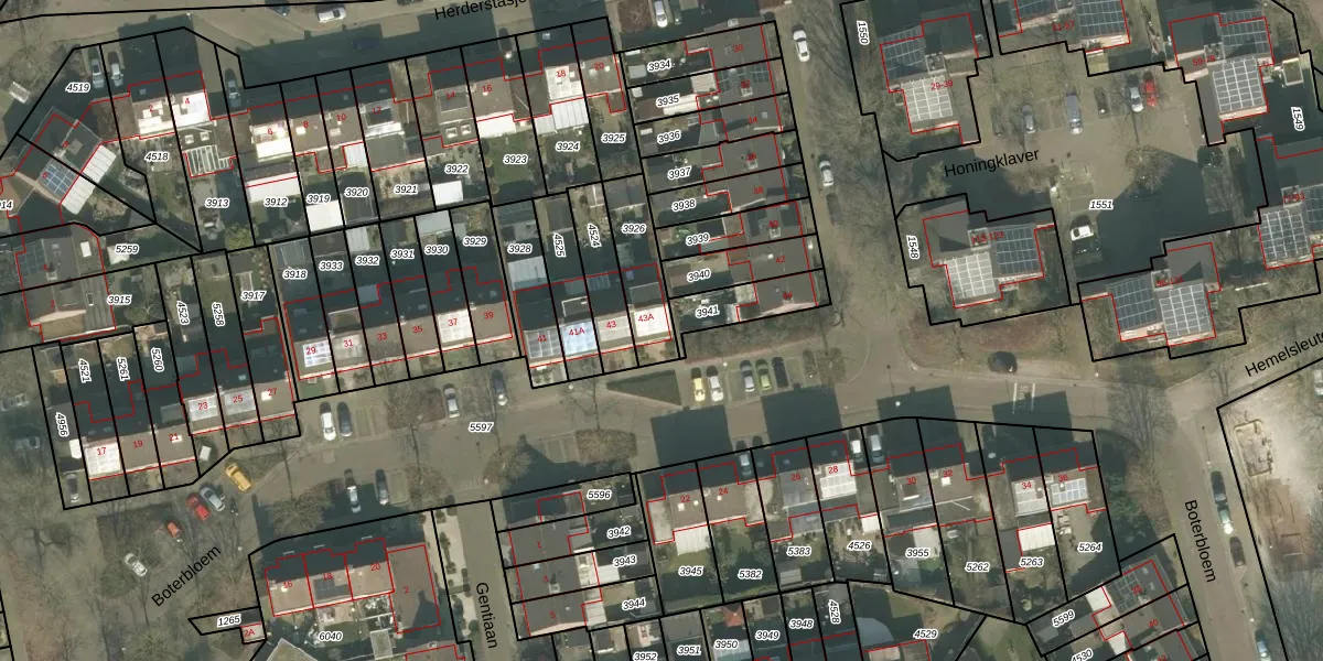 Het perceel waarop Boterbloem 43-A staat heeft een oppervlakte van 180 m². Dit is een middelgroot perceel. De perceeloppervlakte wordt geregistreerd door het Kadaster. Gedetailleerde informatie over de maten van dit perceel kunt u vinden in het rapport Kadastrale kaart met maatvoering van Boterbloem 43-A.