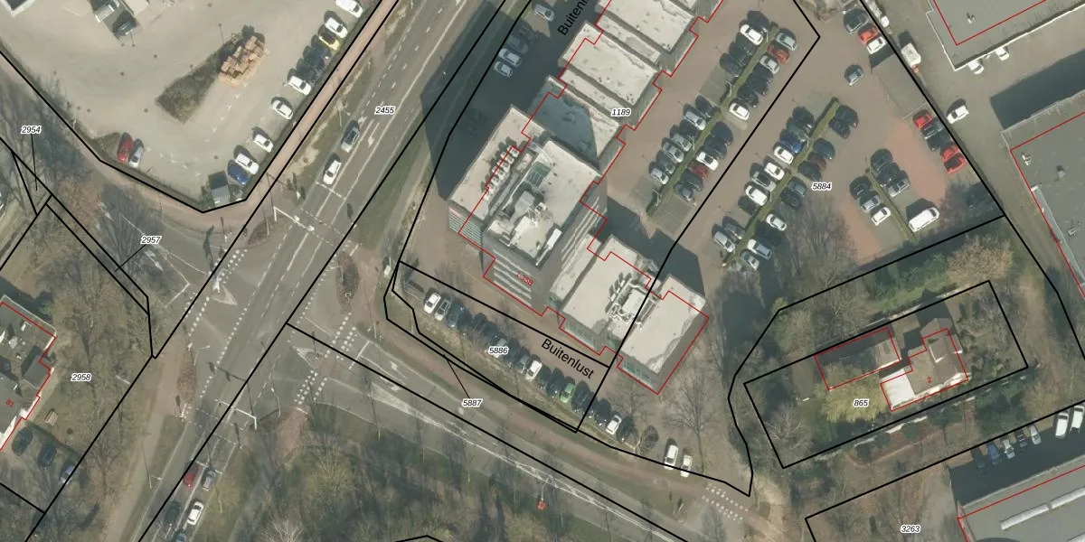 Het perceel waarop Buitenlust 15 staat heeft een oppervlakte van 3900 m². Dit is een zeer groot perceel. De perceeloppervlakte wordt geregistreerd door het Kadaster. Gedetailleerde informatie over de maten van dit perceel kunt u vinden in het rapport Kadastrale kaart met maatvoering van Buitenlust 15.