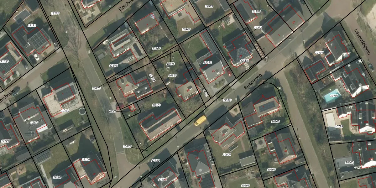 Buitenweg 2-D is gelegen op kadastraal perceel VRY00C10877. Deze kadastrale aanduiding is uniek en wordt gebruikt door het Kadaster om eigendomsrechten en andere zakelijke rechten vast te leggen. Het perceel maakt onderdeel uit van de kadastrale gemeente Venray.