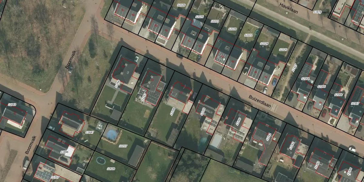 Het perceel waarop Buizerdlaan 25 staat heeft een oppervlakte van 672 m². Dit is een groot perceel. De perceeloppervlakte wordt geregistreerd door het Kadaster. Gedetailleerde informatie over de maten van dit perceel kunt u vinden in het rapport Kadastrale kaart met maatvoering van Buizerdlaan 25.