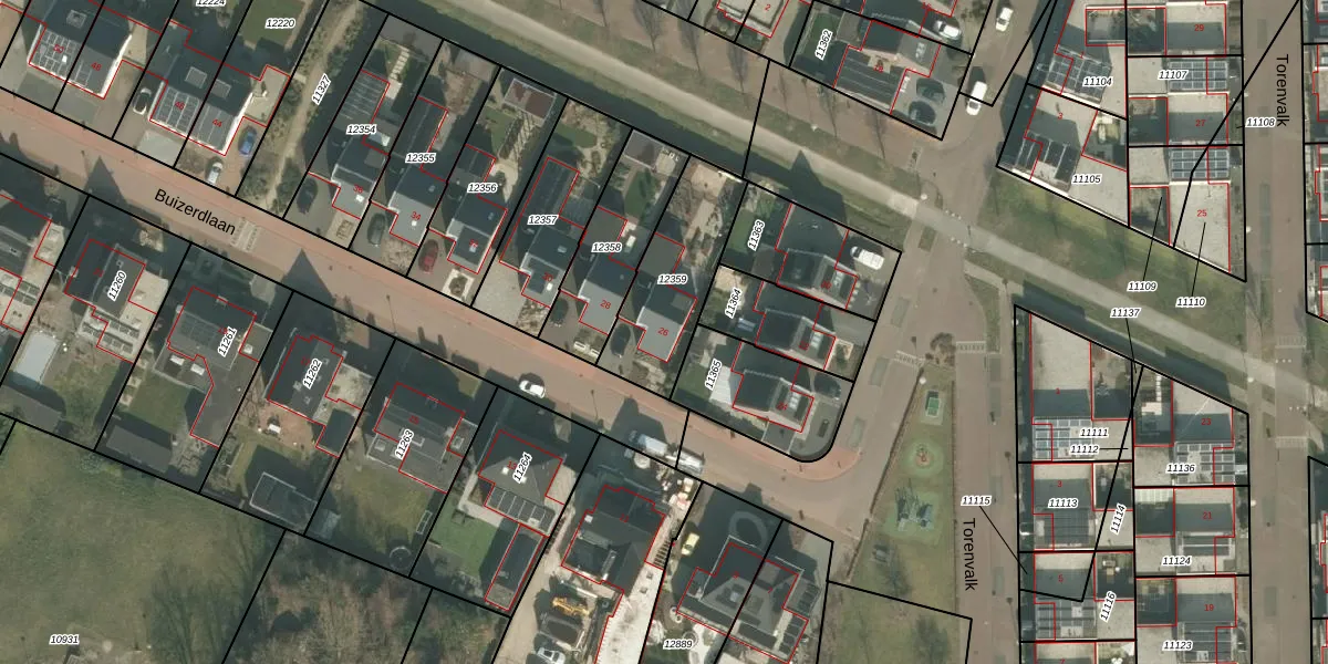 Gebruik de zoekbalk of klik op een perceel voor informatie over de adressen binnen dit perceel.