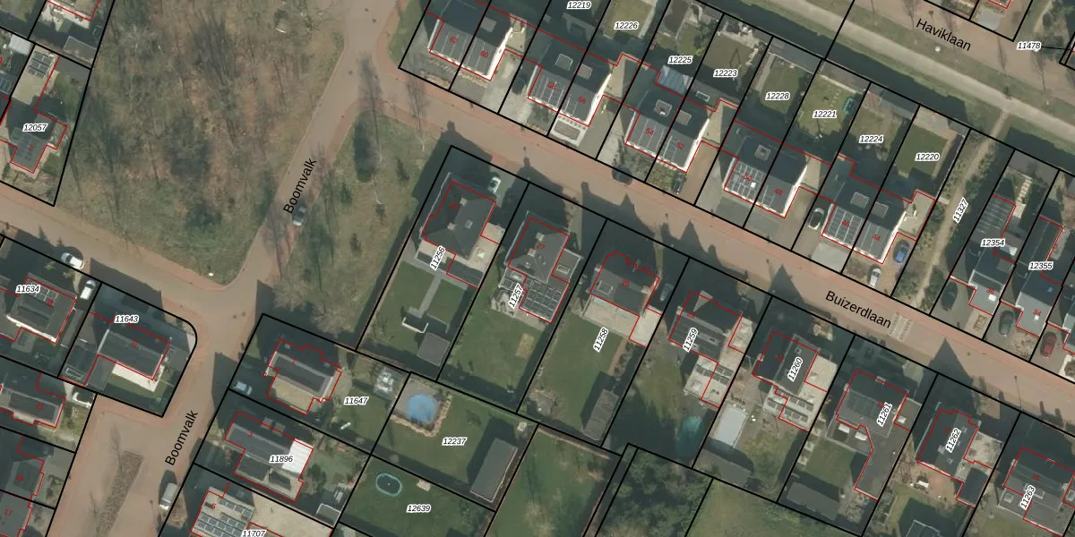 Het perceel waarop Buizerdlaan 27 staat heeft een oppervlakte van 650 m². Dit is een groot perceel. De perceeloppervlakte wordt geregistreerd door het Kadaster. Gedetailleerde informatie over de maten van dit perceel kunt u vinden in het rapport Kadastrale kaart met maatvoering van Buizerdlaan 27.