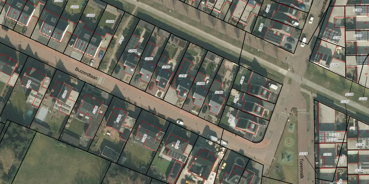 Buizerdlaan 30 is gelegen op kadastraal perceel VRY00C12357. Deze kadastrale aanduiding is uniek en wordt gebruikt door het Kadaster om eigendomsrechten en andere zakelijke rechten vast te leggen. Het perceel maakt onderdeel uit van de kadastrale gemeente Venray.